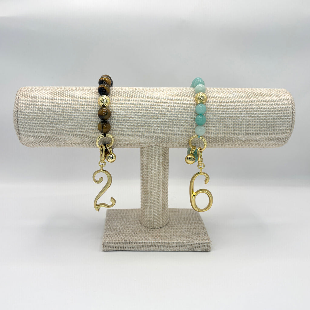 The Hera Aventurine Bracelet features cool aqua blue-green tones with natural color variation. Simple gold accents and a touch of crystal sparkle add a refined finish, while the round charm ring gives it a subtle, stylish detail that charms can be easily clipped on to. The stretchy elastic base is easy to wear and perfect for everyday or special occasions.