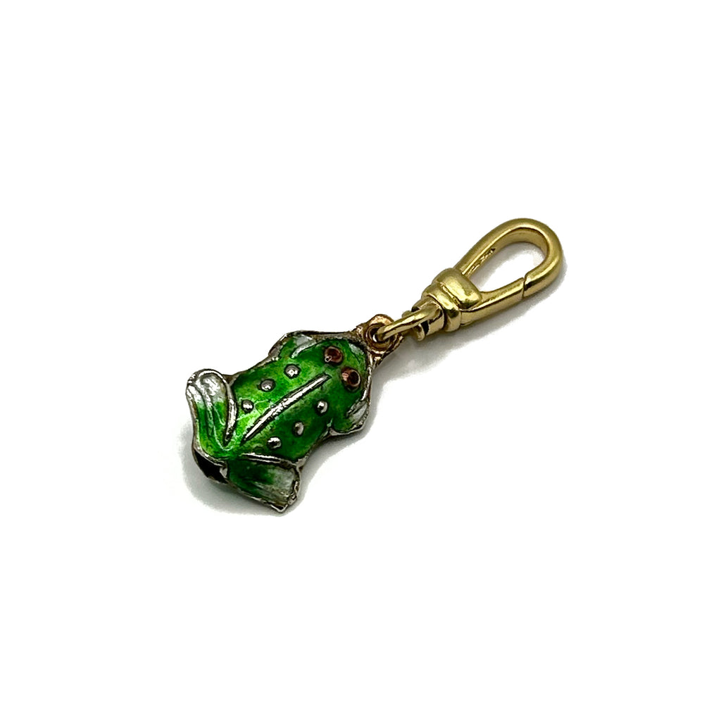 What a cutie - we love this vintage 1940's enamel cloisonné charm, depicting a sweet frog in bright green, white and red.  One of a kind.
