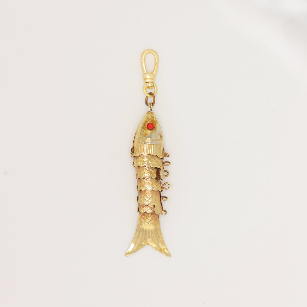 This fun vintage charm is hand-made circa 1960 and is created in the classic mechanical multi-directional movement style. Red glass eyes and a rich plating of 14karat gold over steel add to the specialness of this one of a kind charm.